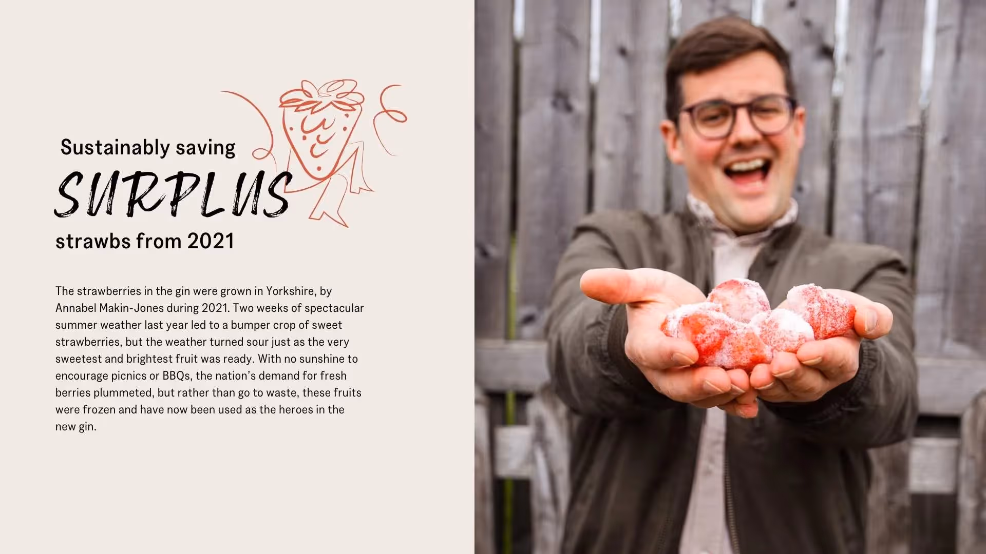 The Sorted Strawberry, vanilla and black pepper liqueur was developed from a passion to support the rewilding of the countryside and reduce food waste using surplus strawberry crops and botanicals forages from farm hedgerows. Made with environmentally friendly production methods and local suppliers – from the temperature efficient gin still, bottles made in Leeds and the strawberries grown in Yorkshire, the core elements of the gin have been sourced from within 30 miles of each other and carefully planned to ensure it is sustainably produced.